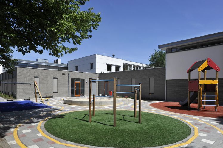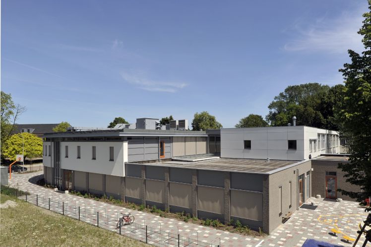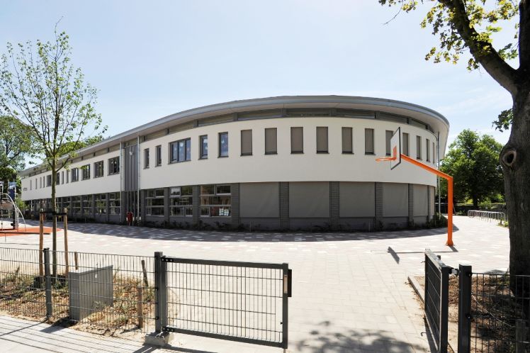 Het gebouw is 2 verdiepingen hoog en is ontworpen door architect Wim Koops van Architectenbureau Kristinsson uit Deventer. De school werkt met onderwijsclusters van 3 of 4 groepen. In het ontwerp heeft elk cluster zijn eigen leerplein. Het gebouw is in een L-vorm om de aangrenzende belendingen gesitueerd. Het is dan ook transparant ontworpen aan de buitenzijde waar zich de groepsruimten bevinden. De binnenzijde met pleinen en verkeersruimten heeft een meer gesloten karakter.